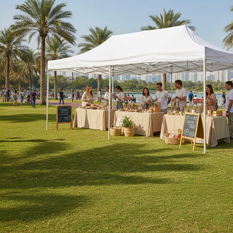 استمتع بأقصى درجات الراحة في الهواء الطلق مع خيامنا، المثالية للتخييم أو إعدادات الحدائق أو رحلات المغامرة. اختر من بين خيام التخييم المتينة، الخيام المقاومة للماء، الخيام الخارجية، الخيام القابلة للطي، وأكواخ التخييم، المثالية للإعداد السهل في دبي وما حولها.