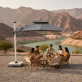 - مزودة بقاعدة رخامية بوزن 150 كجم، تضمن هذه المظلة الثقيلة الثبات في الظروف العاصفة، مما يجعلها مثالية للشرفات والحدائق والتراسات.