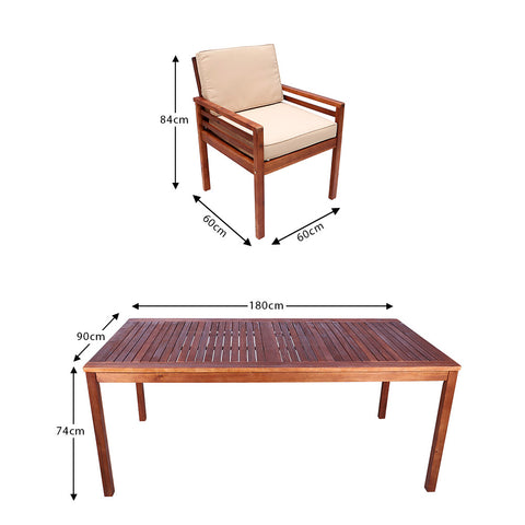 - Chair - 60 x 60 x 84cm (Comfortably seats, 6 chairs with cushions)