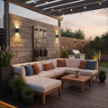 - The outdoor wall fountain with planters serves as both a decorative feature and functional planter.