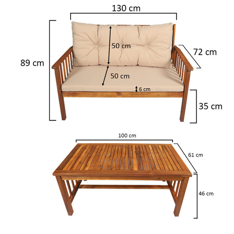Material: Made of hardy Acacia wood, oil finishing, strong and durable. Cushions made of 100% polyester fabric.